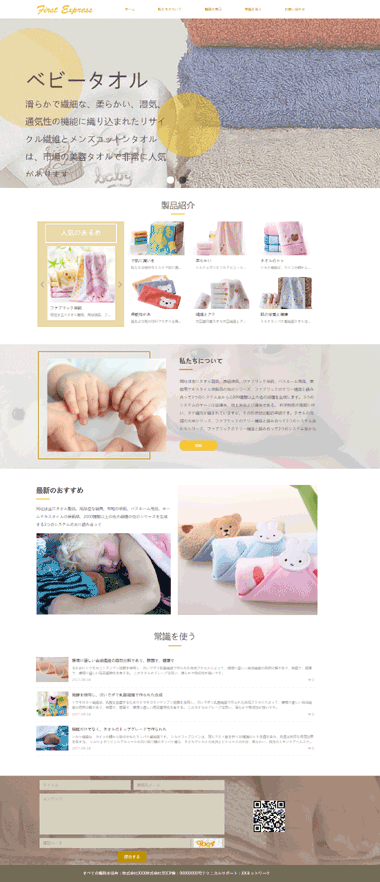 毛巾H5模板网站是经专业网站设计师精心制作的毛巾类H5模板网站,模板成品布局合理,有利于毛巾网站SEO优化排名,还适用于毛巾网站商城、此模板是毛巾网站的日文页面展示。易学易懂,功能强大,拥有数千套精美H5模板网站,用户只需会上网,无需学习编程及任何语言,只要使用该智能建站系统即可完成精美网站设计!